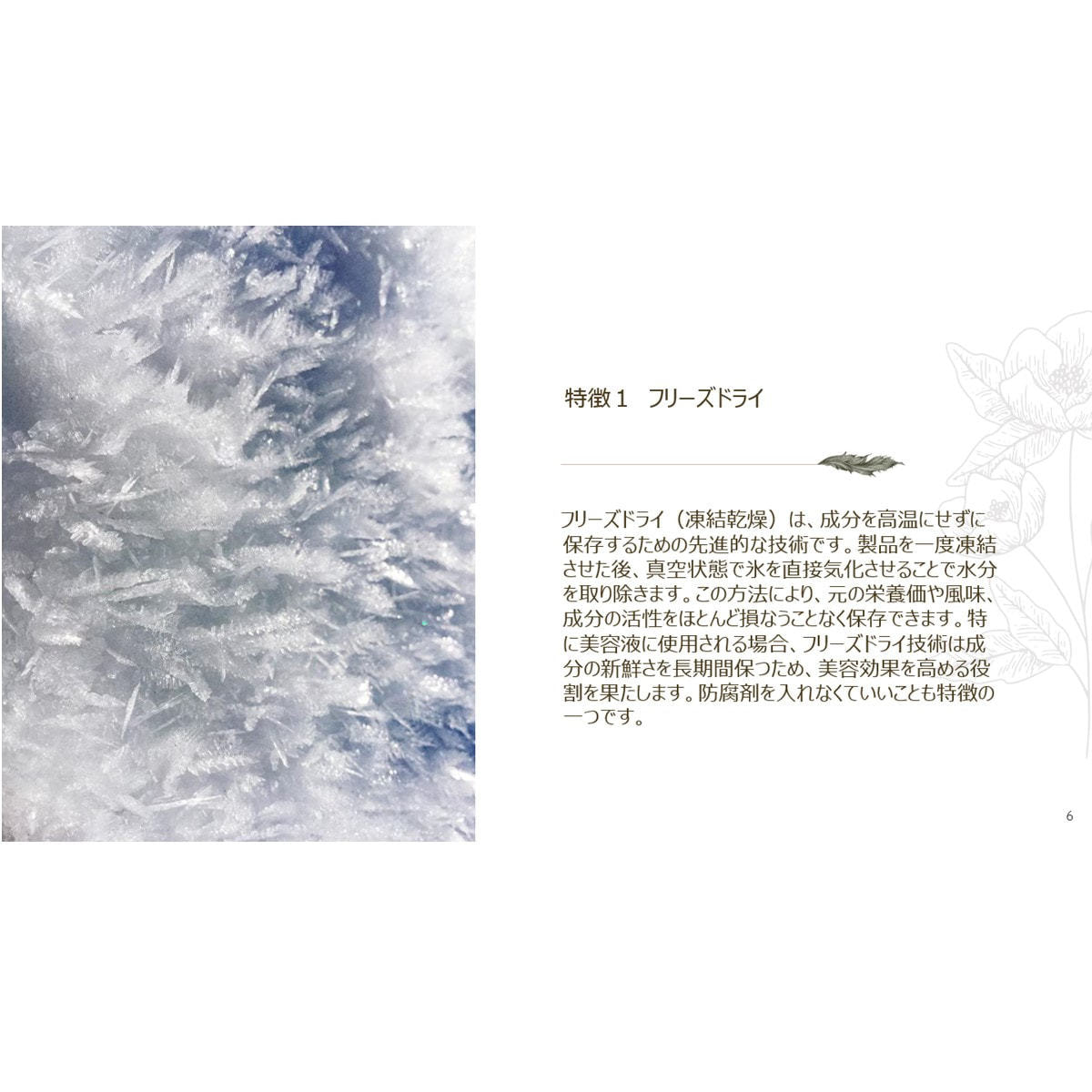 最先端のフリーズドライ技術で、美容成分を濃縮し、高い純度と鮮度を実現。