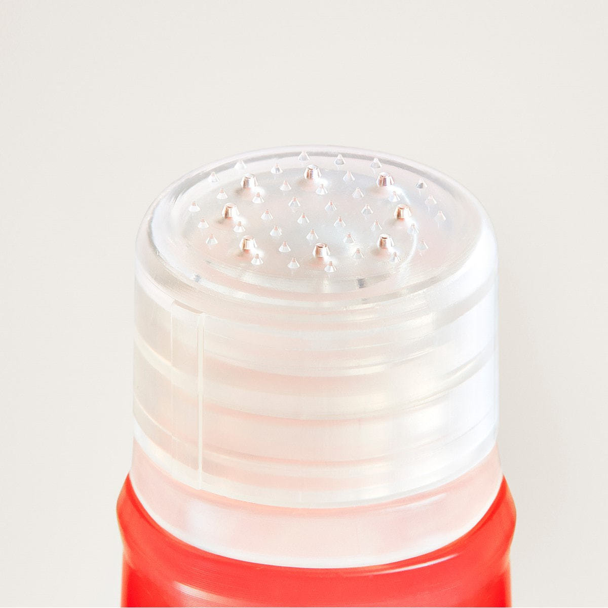 2.容器尾部のボタンを 1~2 回ノックし、その状態を 3 秒保持して美容液を角層に注入します。